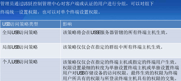 可完全控制U盘、移动硬盘、数码相机、MP3以及其它USB存储设备的读写,有只读、只写、阻止、放行、写标识和标识识别、透明地加密和解密等模式;
